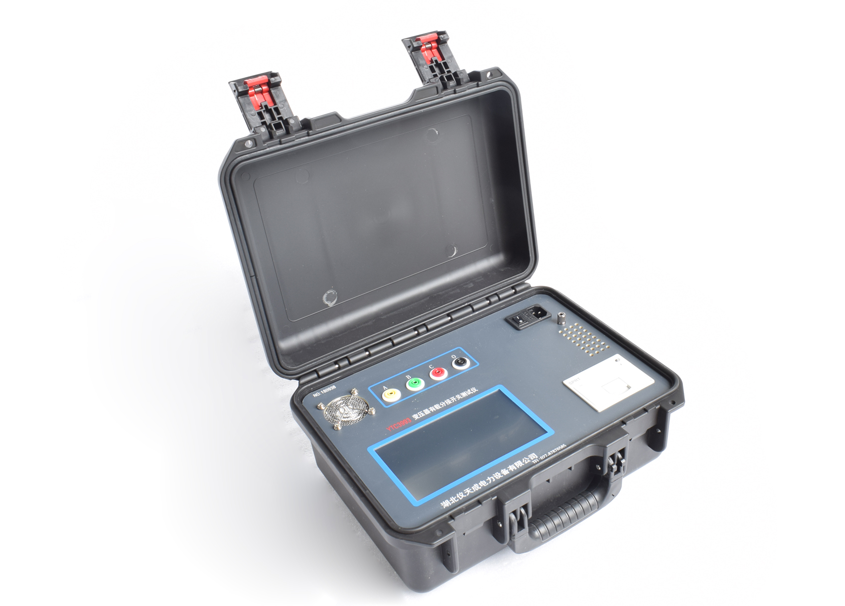 4、將測(cè)試線的一端接在有載分接開(kāi)關(guān)上,另一端接在儀器上。然后打開(kāi)電源開(kāi)關(guān);