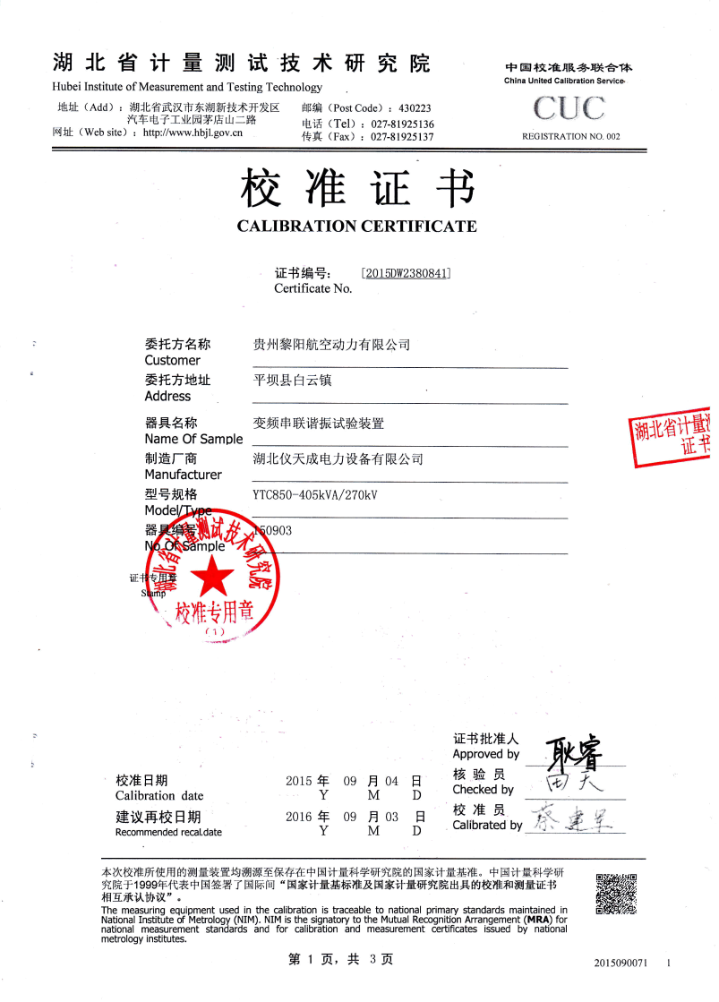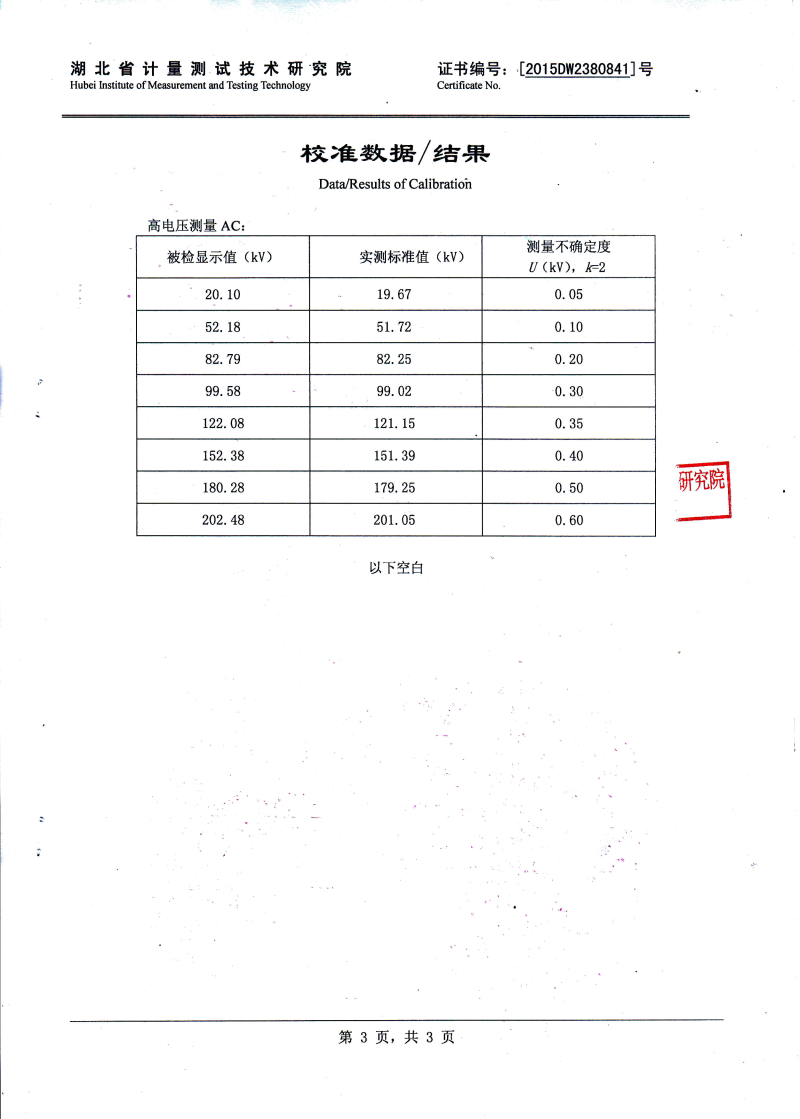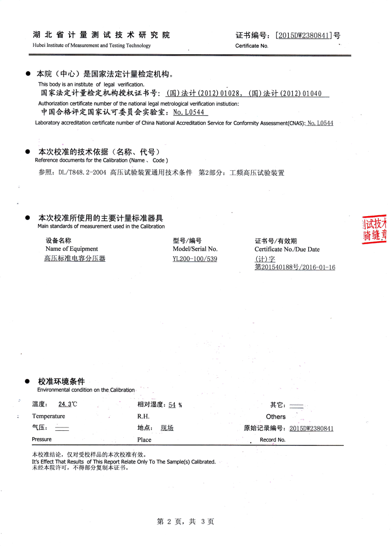 | 110kV及以下電壓等級電氣設(shè)備 | 30-300Hz | ≤265kV | 16kV | |||||||